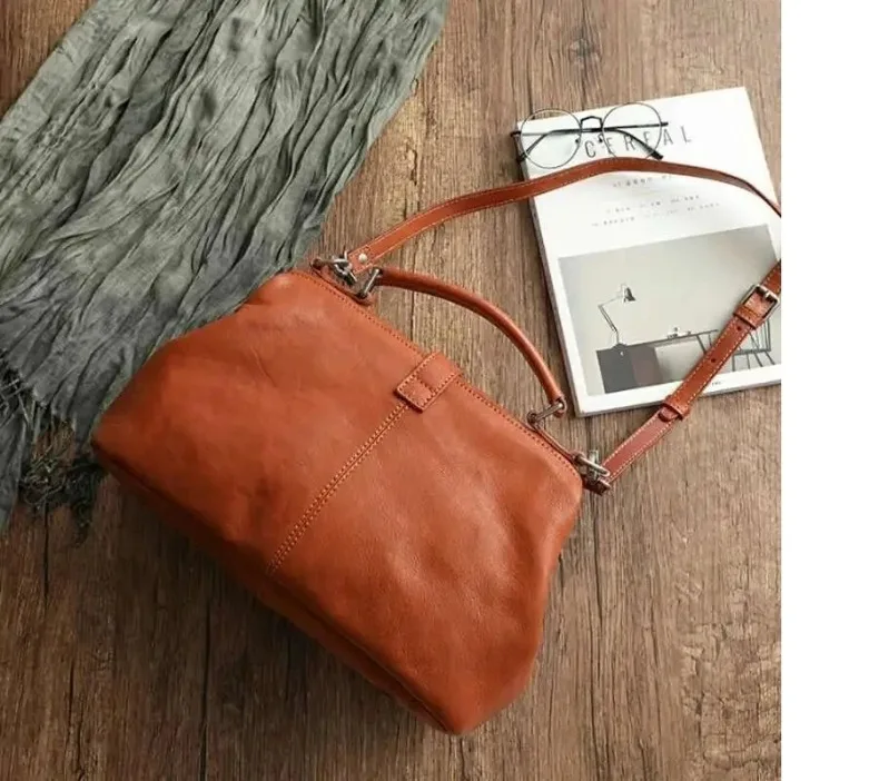Soft Buffalo Leather Doctor Bag Women’s Vintage Shoulder Bag Crossbody Purse Spacious Cowhide Ladies Handbag Оригинальная мягкая сумка-доктор из буйволиной кожи для женщин, винтажная наплечная сумка, сумка через плечо, вместительная кожаная женская сумка